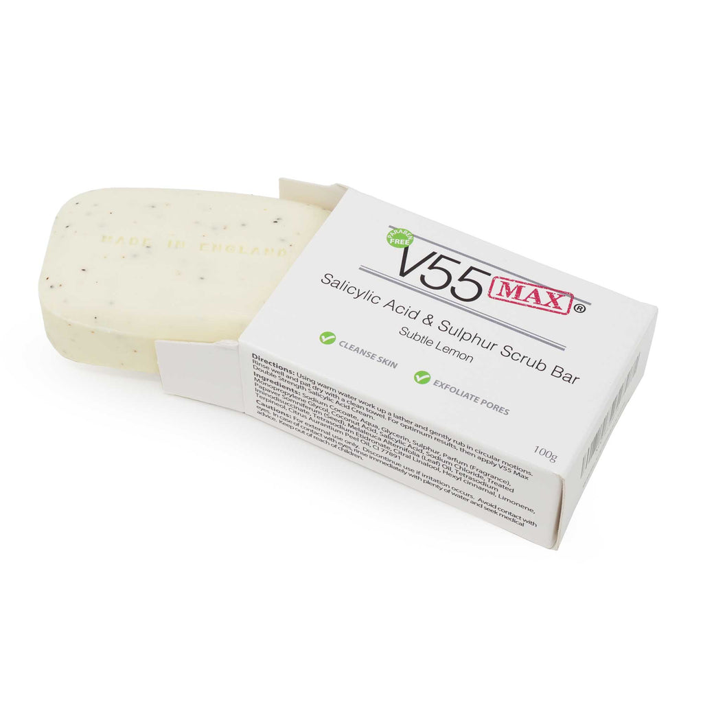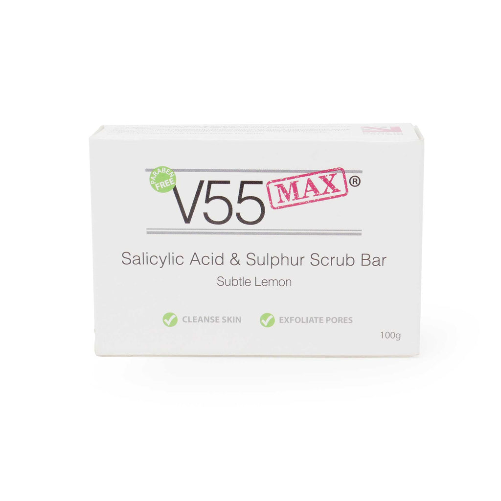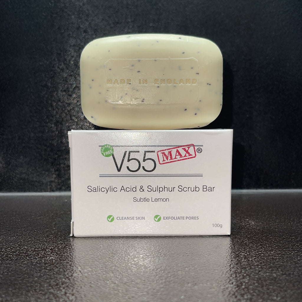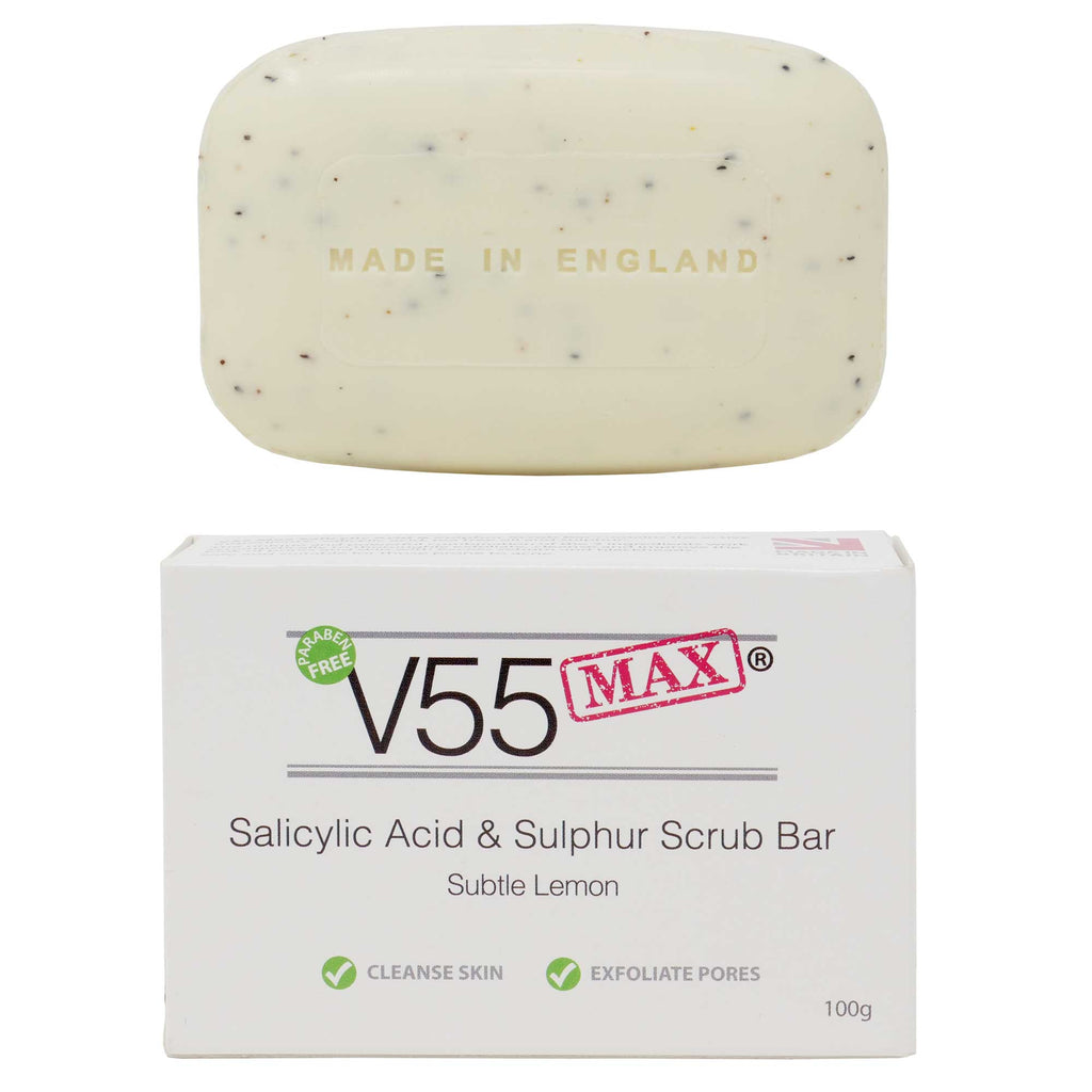 V55 MAX Salicylic Acid, Tea Tree Oil and Sulphur Soap Scrub - Paraben and Cruelty FREE - 100 grams